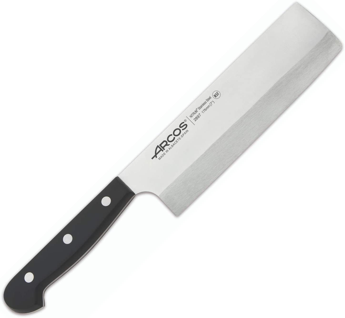De hoja estable y ancha, con forma rectangular. Apto para trocear piezas grandes de carne y cortar chuletas.