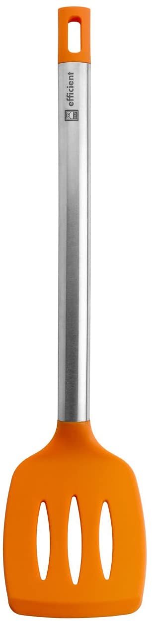 Espátula de la colección Efficient ideal para usar en todo tipo de ollas, cacerolas o sartenes gracias a su fabricación en nylon y silicona de alta calidad que las protege y las mantienen sin arañazos.