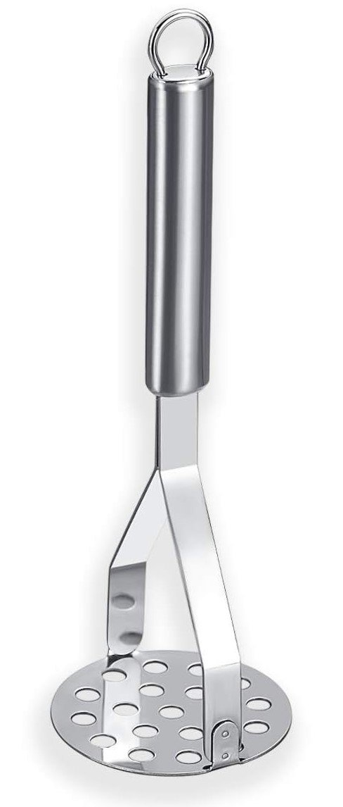 Es un utensilio que se utiliza para aplastar las patatas cocidas o cualquier otra verdura cocida y convertirlas en puré. Suele tener una base plana con agujeros y un mango largo. Al presionar las patatas cocidas a través de los agujeros, se obtiene un puré de patatas suave y sin grumos.