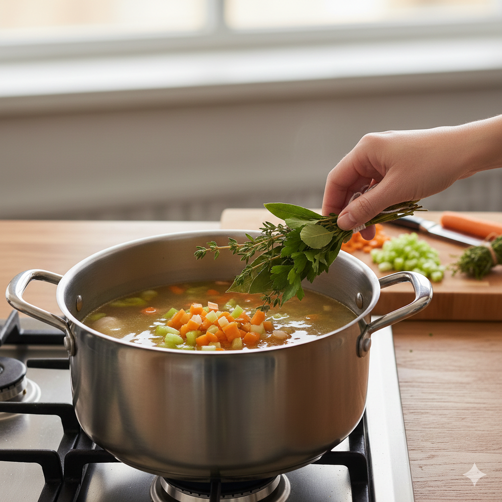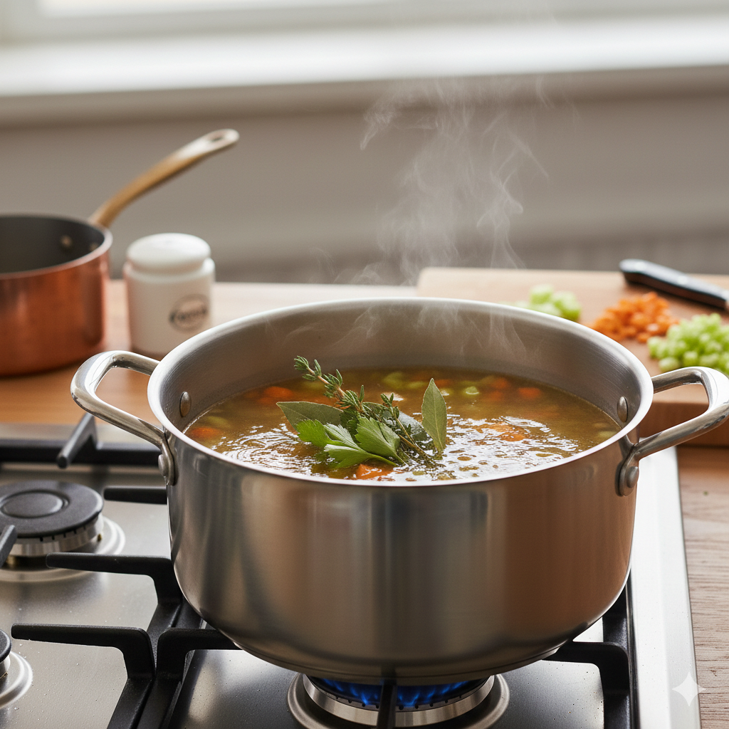 ¿Sabías que un buen fondo no debería llevar sal? Los grandes chefs franceses lo mantienen neutro para tener control total sobre la reducción final de sus salsas. Otro dato curioso: en las cocinas profesionales de París, una olla de fondo puede estar al fuego durante todo el día, perfumando el ambiente con el aroma del Mirepoix (la tríada sagrada de cebolla, zanahoria y apio).