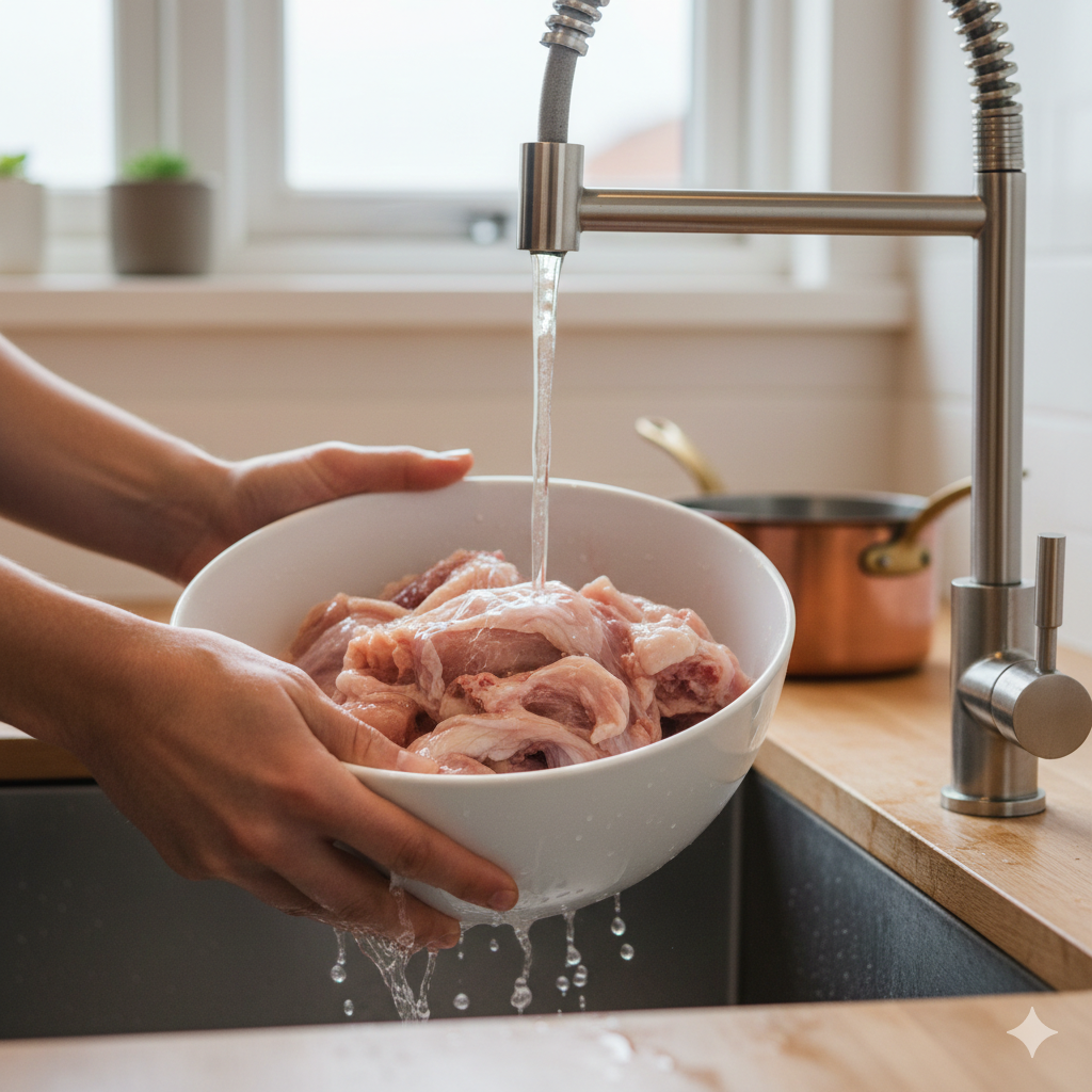 Lava bien los huesos de pollo para eliminar restos de sangre. Esto evita que el caldo quede turbio.