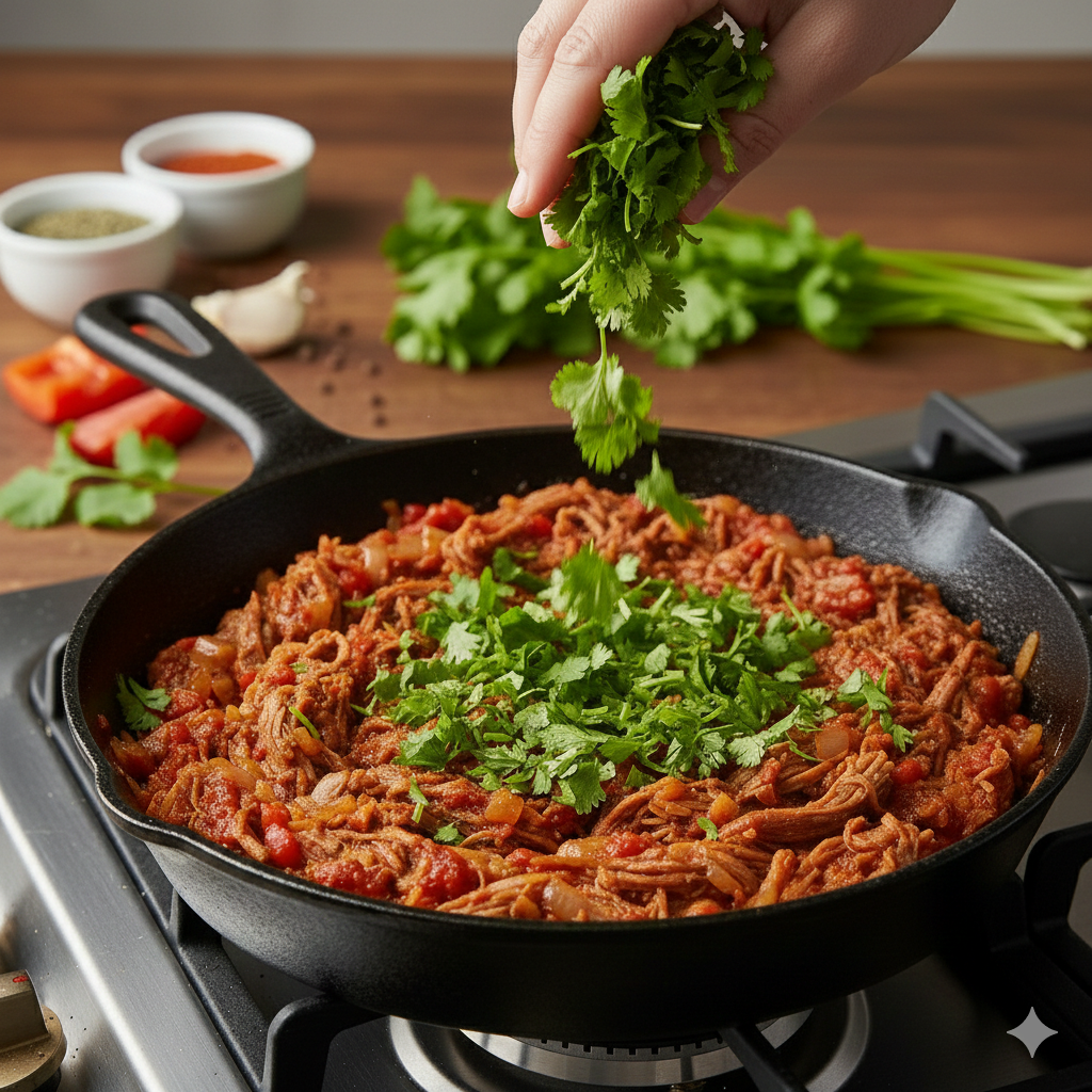 Justo antes de servir, apaga el fuego y añade cilantro fresco finamente picado. El calor residual libera el aroma del cilantro sin "sancocharlos", manteniendo la frescura.
