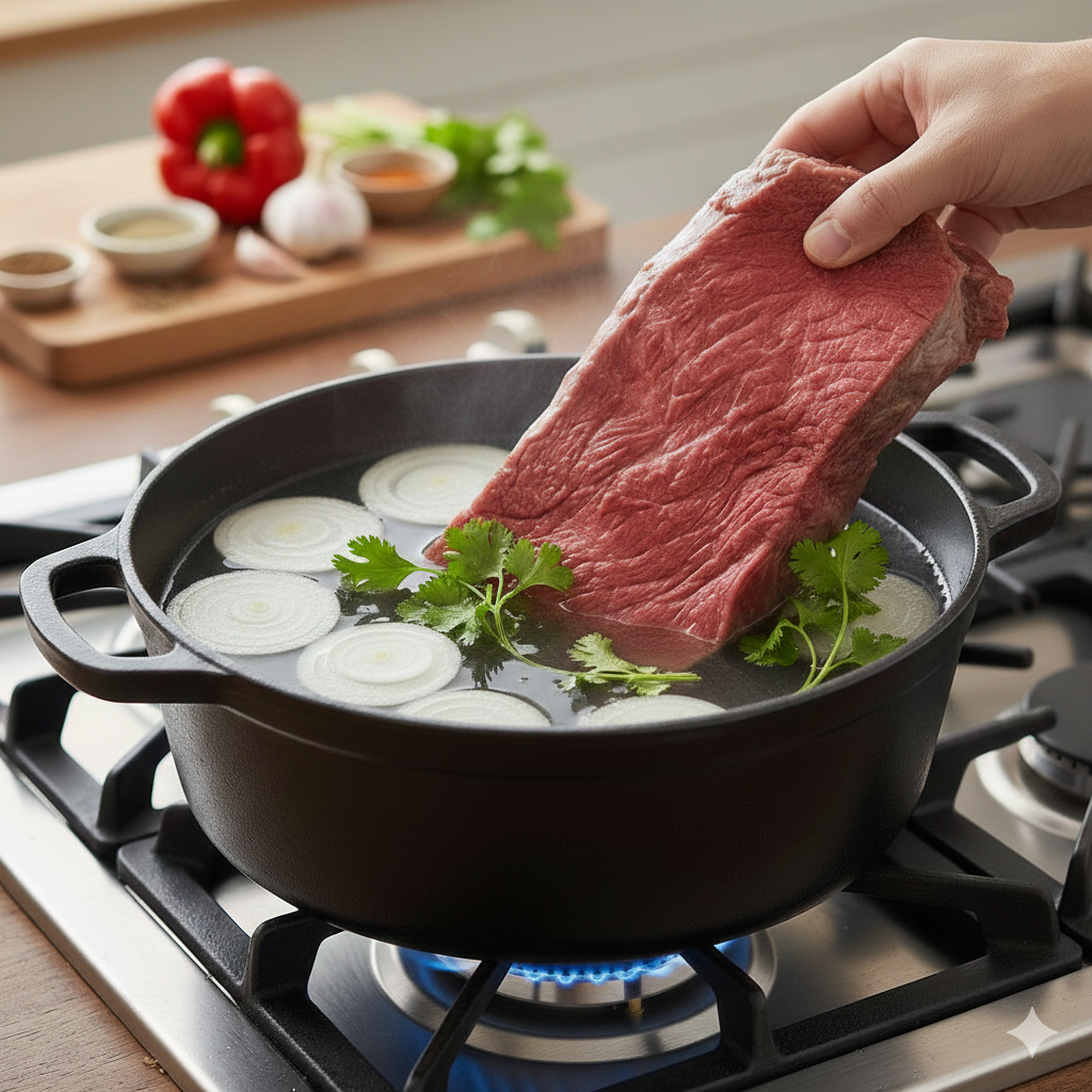 No botes el caldo: El agua donde se coció la carne es oro líquido. Úsala para sopas o para hidratar la carne si la vas a recalentar.